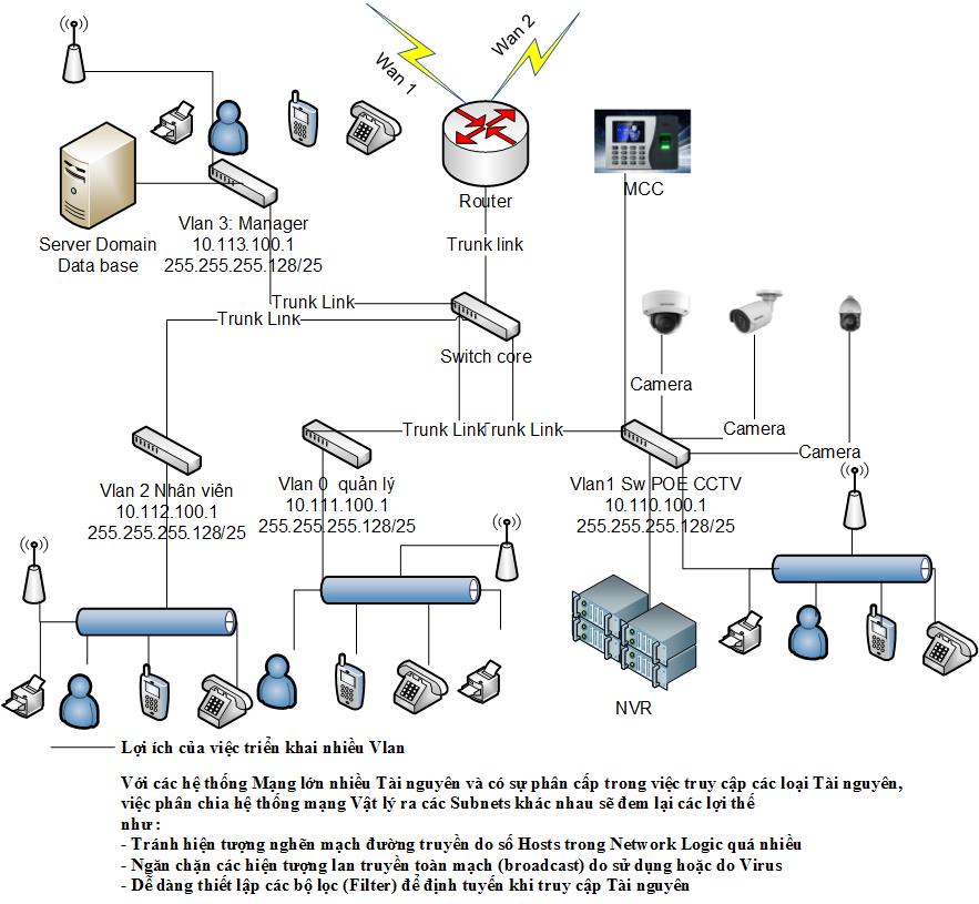 + Phân chia nhiều SSID với chính sách tương ứng cho nhiều đối tượng người dùng khác nhau (Guest, Internal, Staff…).